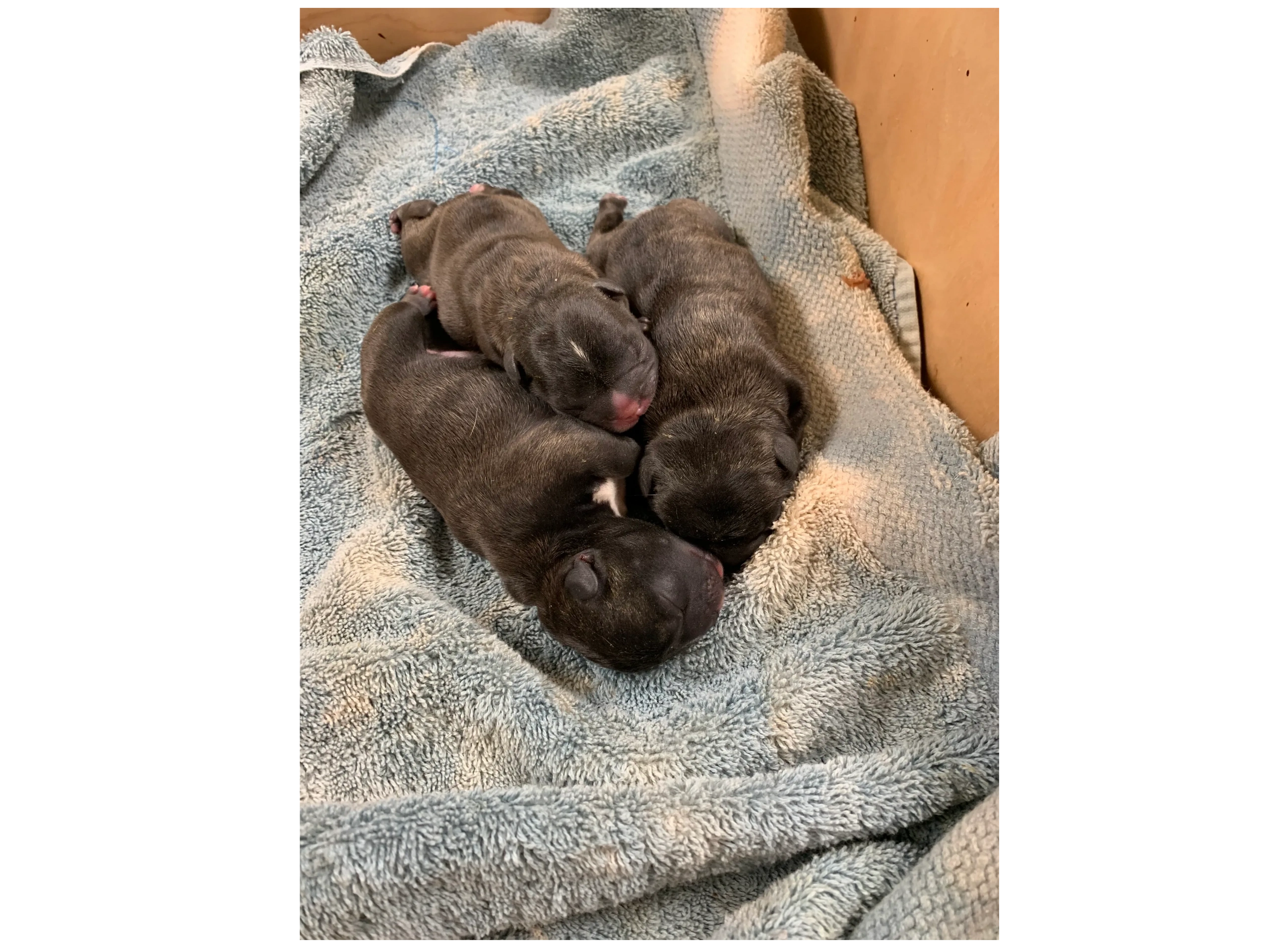 On March 25, 2022 our beautiful Santana gave us 3 beautiful boys out of Drax. 2 brindles and 1 pied. PLEASE NOTE THE PIED BOY WILL NOT BE AVAILABLE